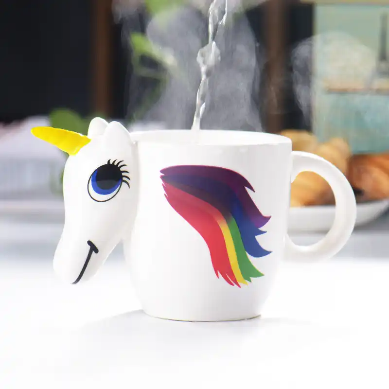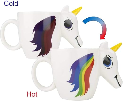 Just let people know not to talk to you until the unicorns mane turns a rainbow color. The color changing mug measures 591 inches by 354 inches by 413 inches. You can get up to 15 off discount when you purchase this product from our website so you only have to pay us1251 for 350ml novelty unicorn heat color changing coffee mugs home office cup kids gifts. A cute unicorn shaped mug with a 3d face and horn.