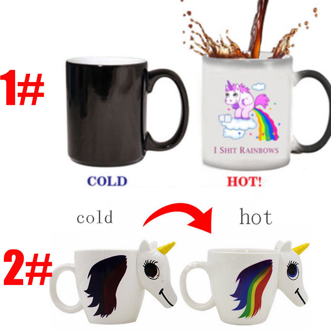 Funny Unicorn Cartoon Color Changing Mugs Magic Heat Sensitive