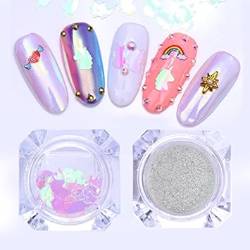Buy Generic 2 Boxes Unicorn Ab Color Nail Sequins Glitter Set