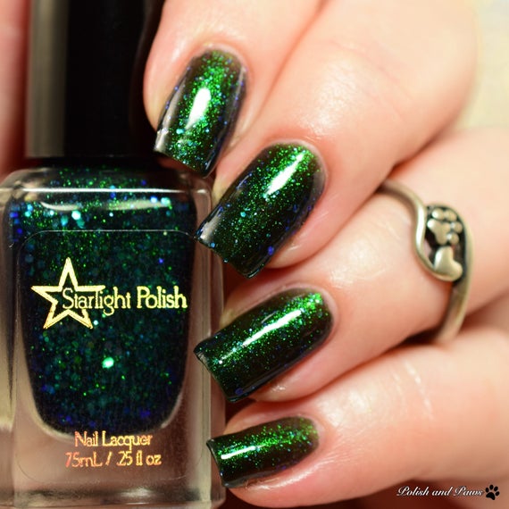 Unicorn Aurora Night Black Color Shifting Polish Green To Etsy