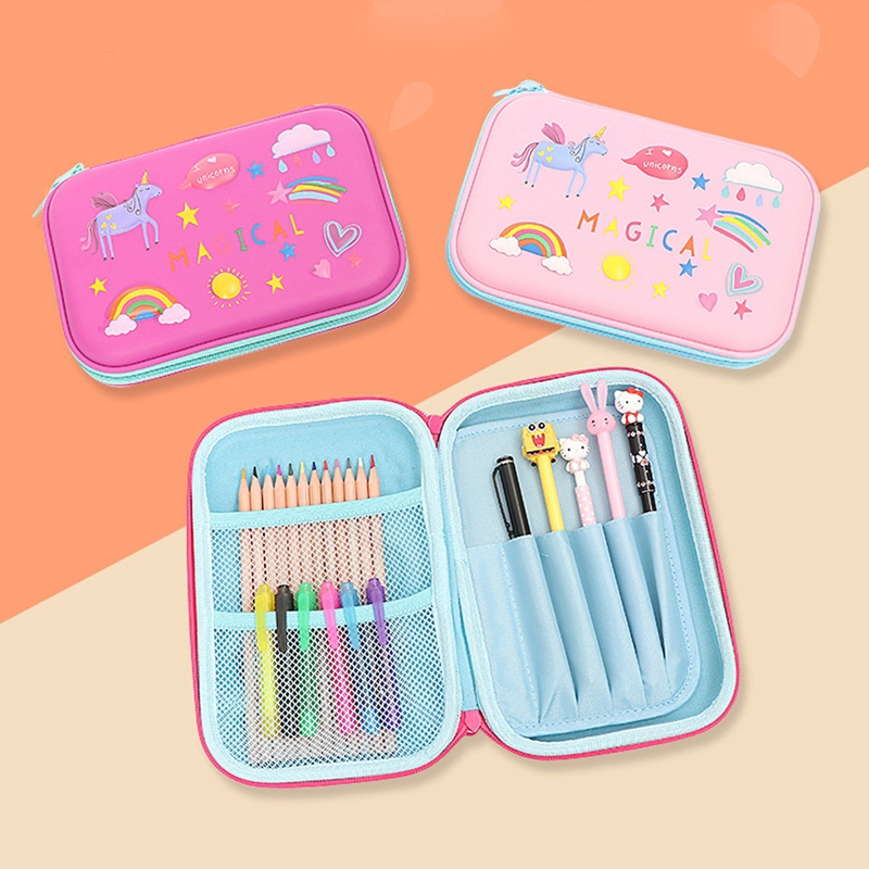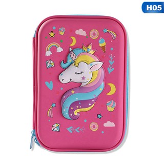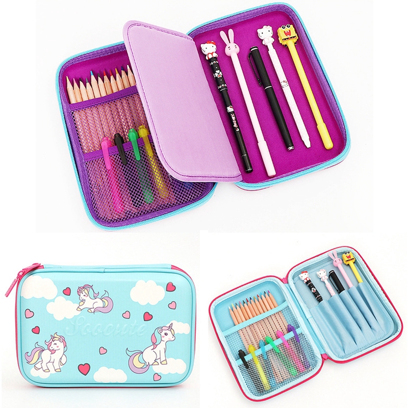 New Cute Unicorn Embossed Hardtop Pencil Case Kids Large Colored