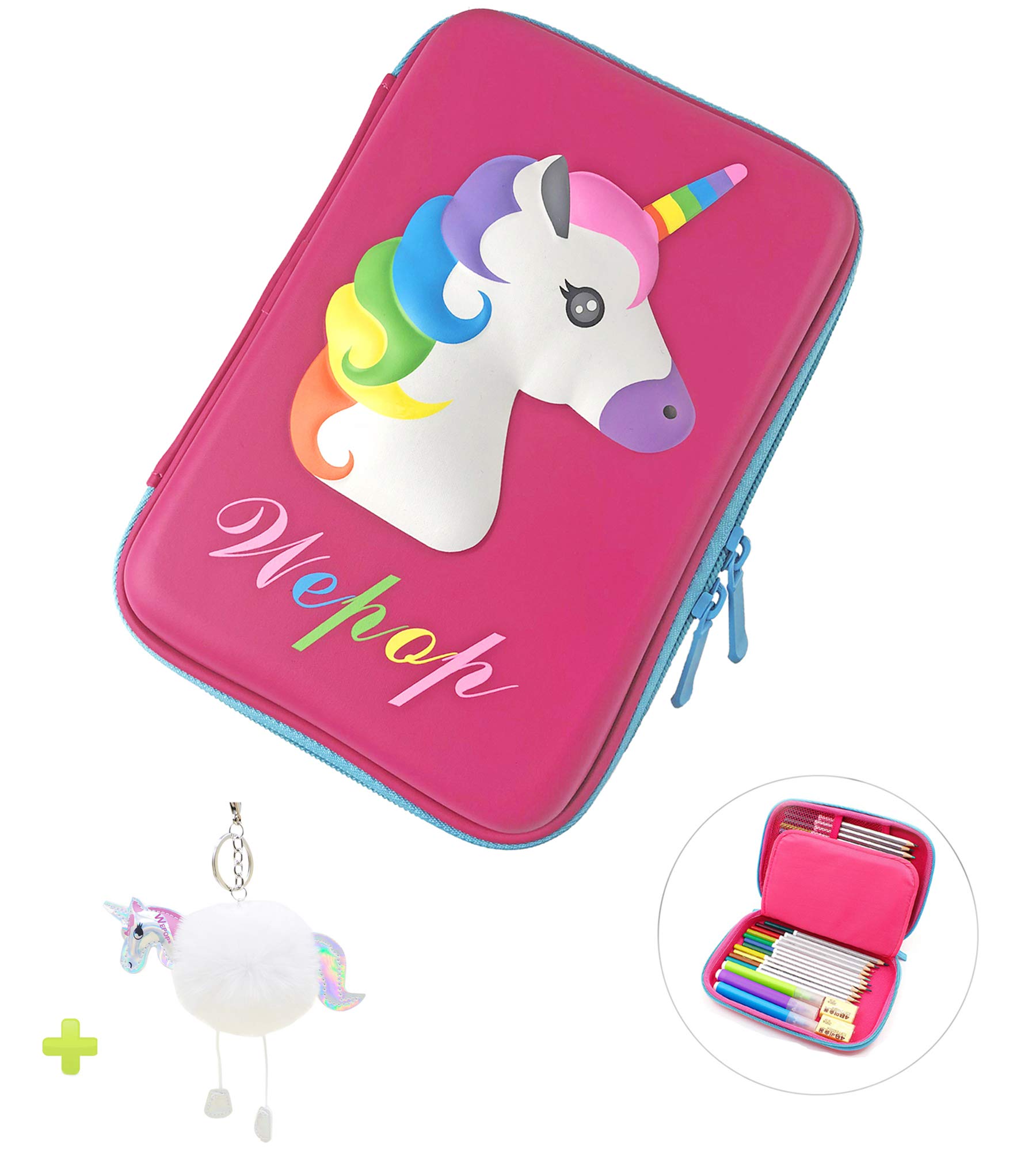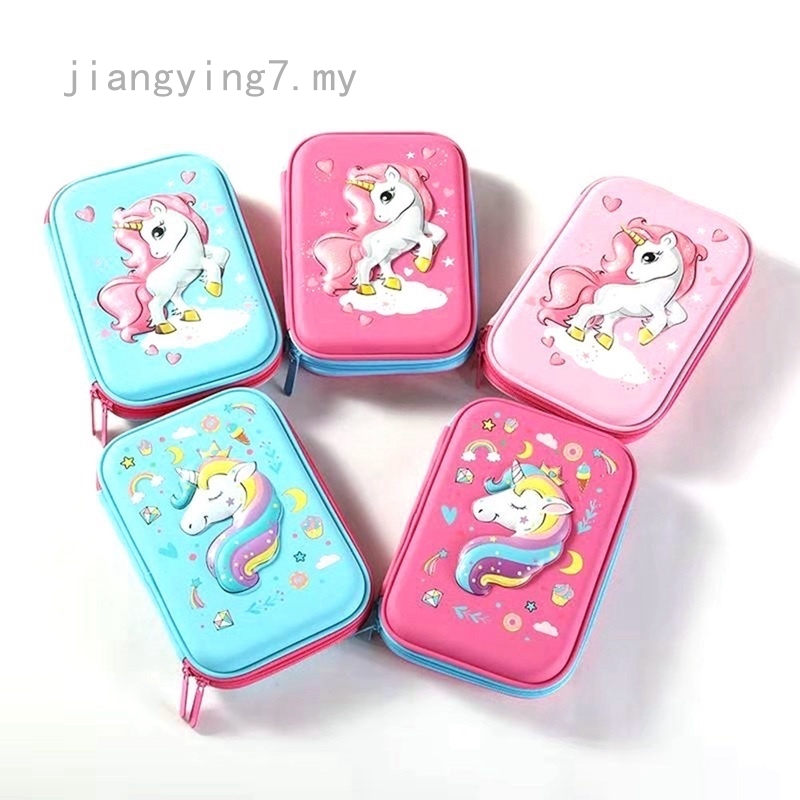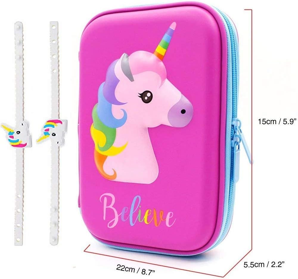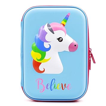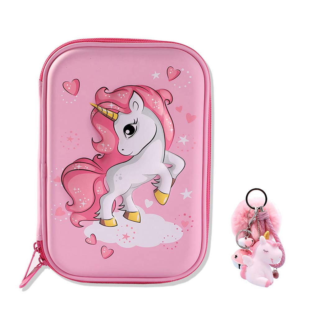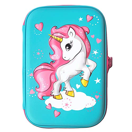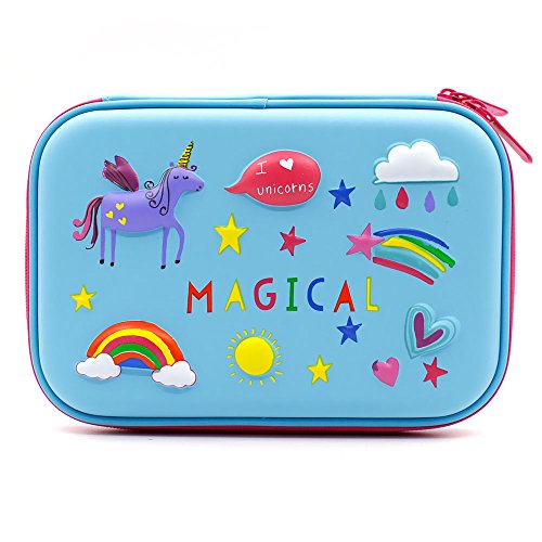 Jiangying7 Cute Unicorn Embossed Hardtop Pencil Case Kids Large