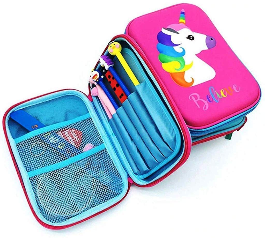 2 Pack Cute Embossed Unicorn Hard Shell Pencil Case Large Eva