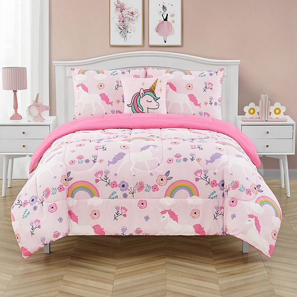 Girls Pink Rainbow Unicorn Comforter Set In Twin