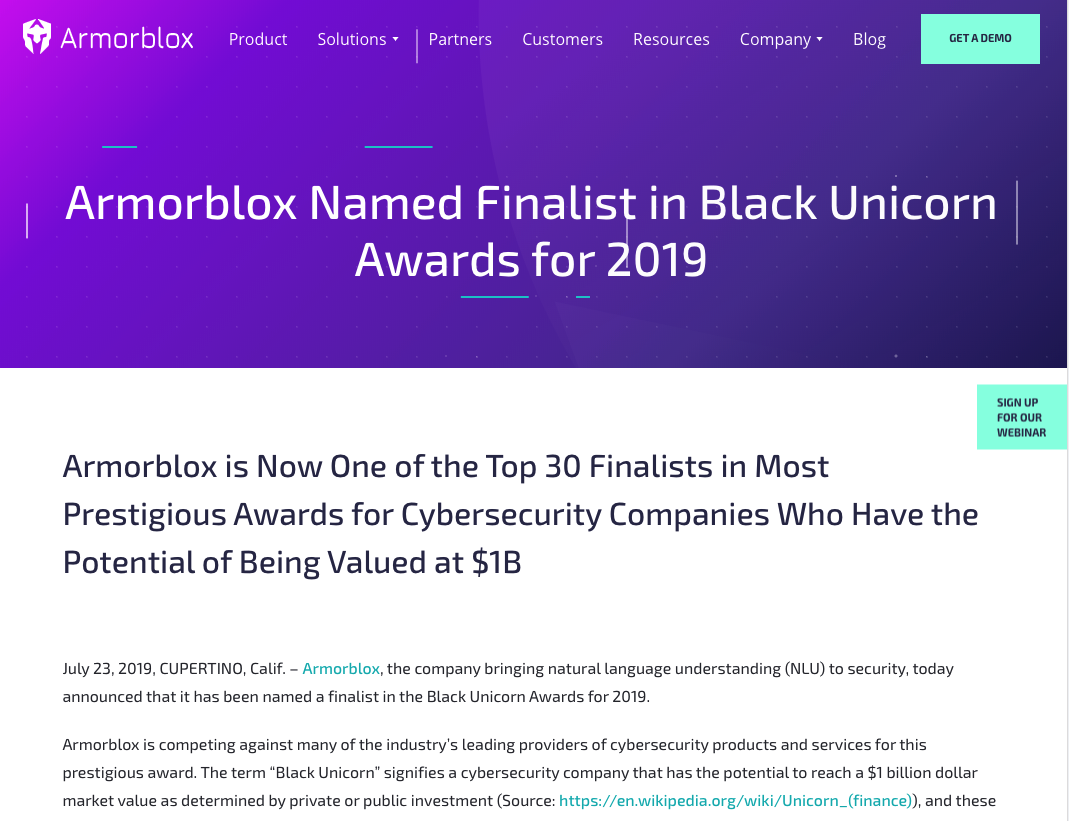 Armorblox Named Finalist In Black Unicorn Awards For 2019
