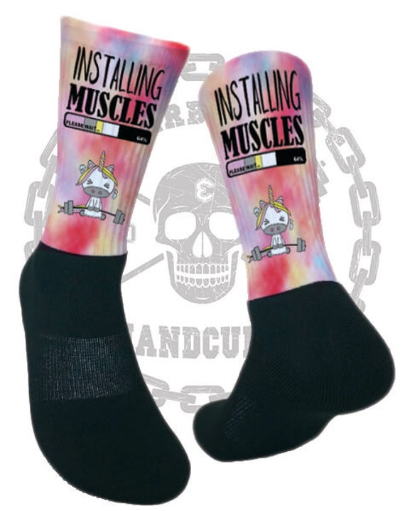 Cute Unicorn Installing Muscles Athletic Or Compression Socks