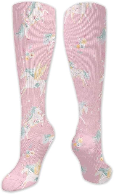Compression Socks Pink Unicorn Soccer Sports Knee High Tube Socks