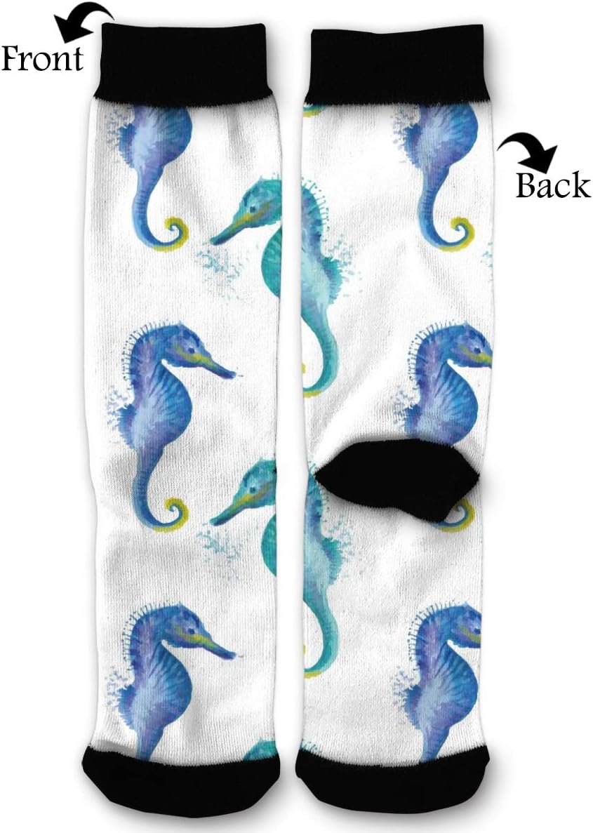 Mens Compression Socks Cute Cartoon Colorful Unicorn Seahorse