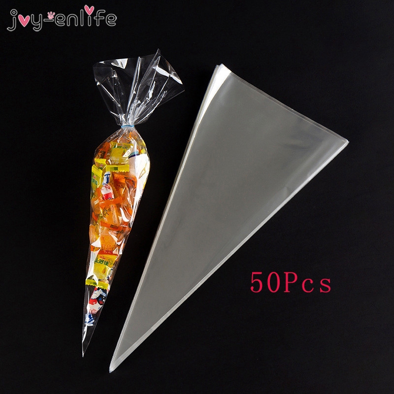 50pcs Diy Wedding Birthday Party Sweet Cellophane Clear Candy Cone