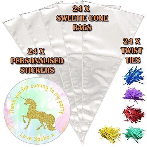 24 X Personalised Unicorn Birthday Party Sweet Cone Party Bag