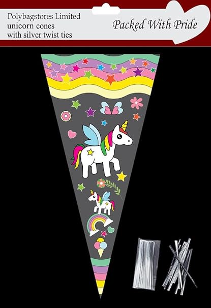 25 Unicorn Cone Party Cello Bags Sweet Candy Cones Twist