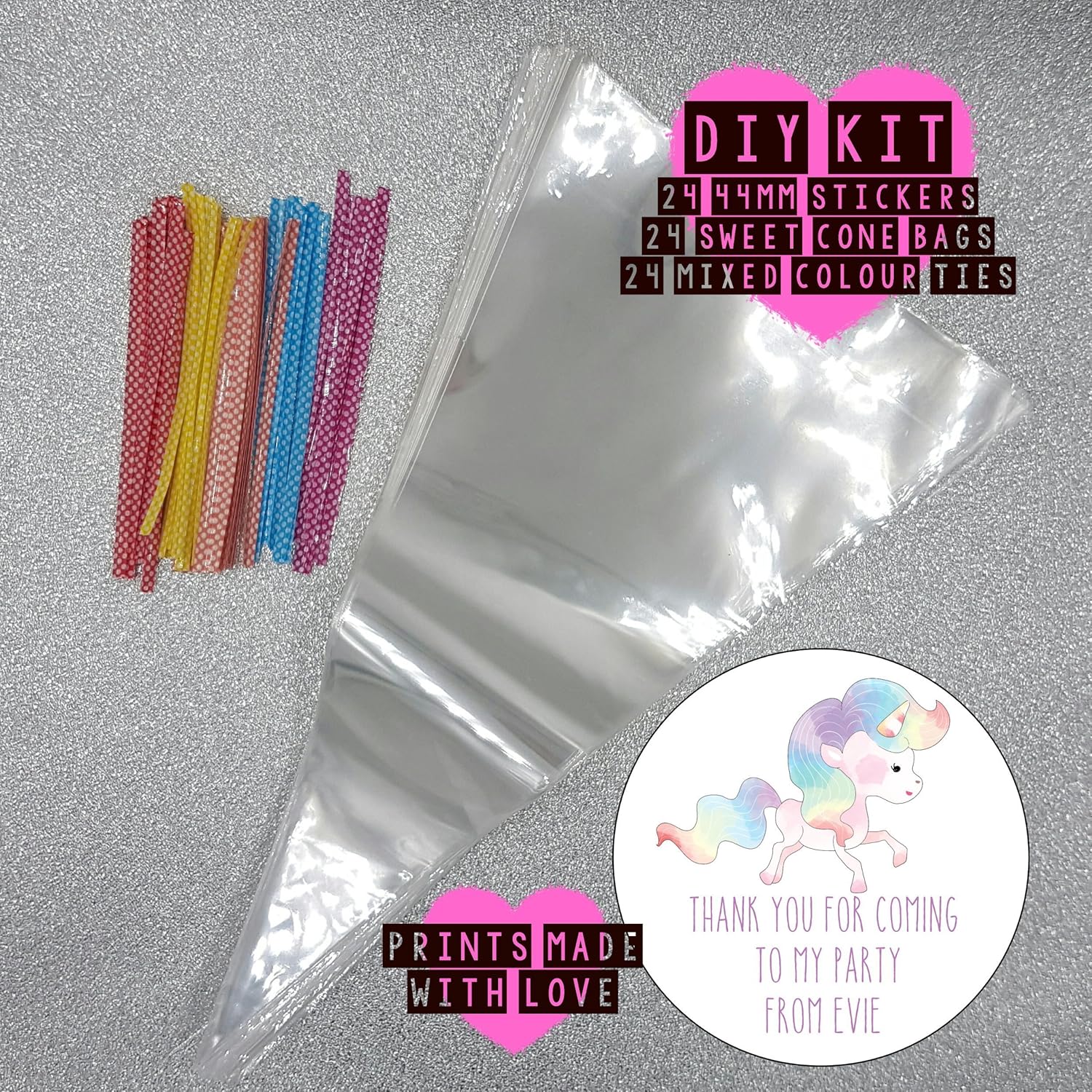Unicorn Party Kit Sweet Cone Bags And Stickers Thank You For