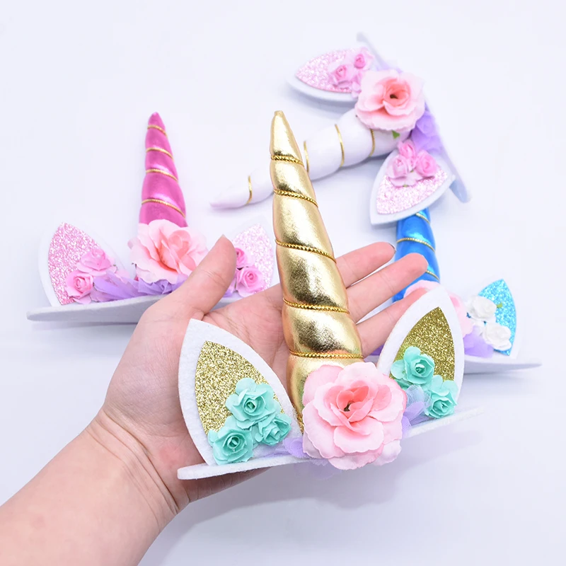 Unicorn Cake Topper Handmade Flowers Unicorn Horn Ears Happy