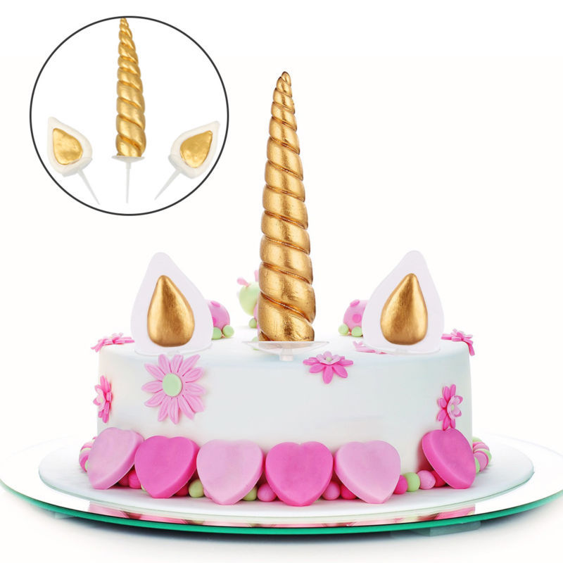 3pcs Cake Topper Gold Unicorn Horn Ears Set Cake Decorations Baby