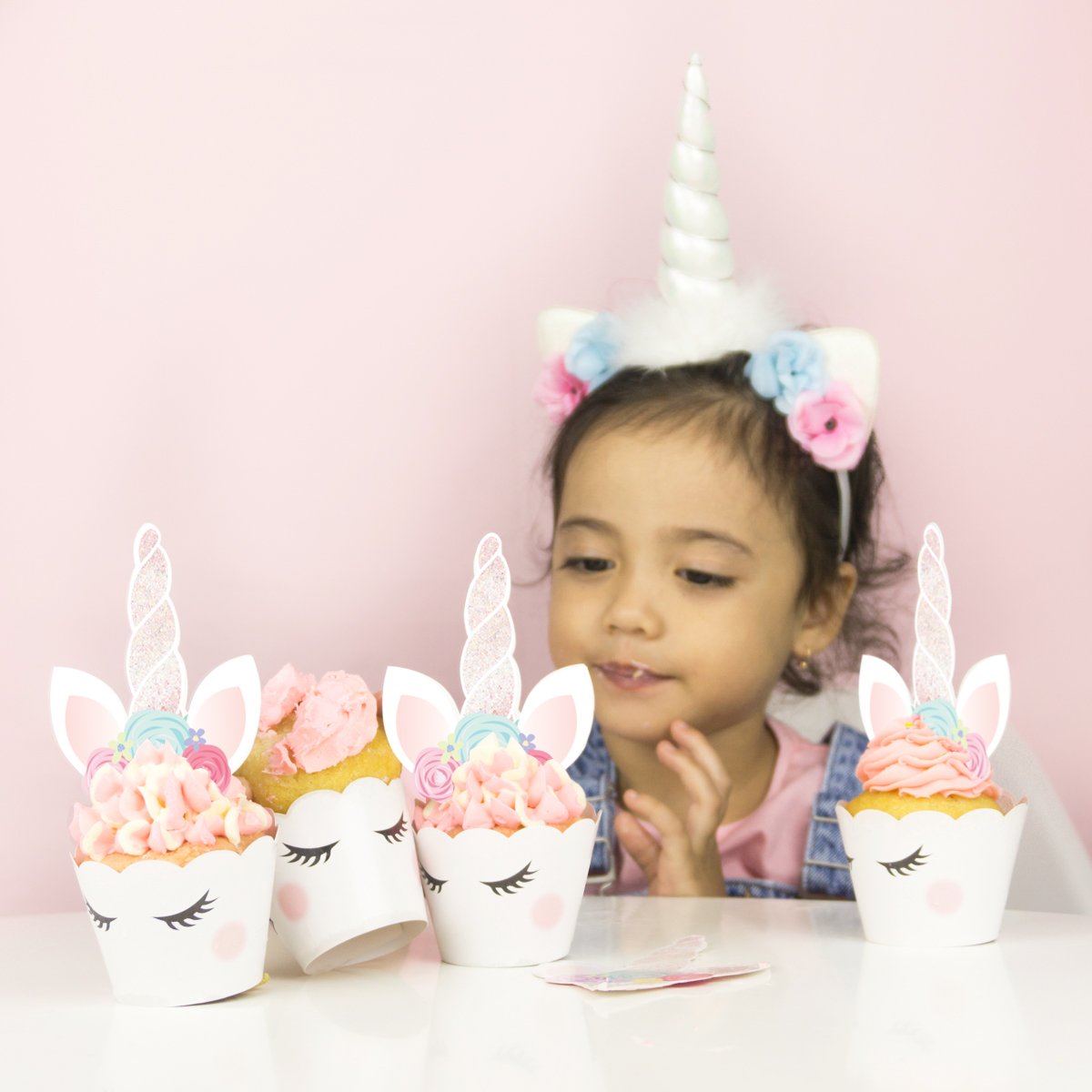 Unicorn Cupcake Toppers Wrappers Birthday Party Decorations