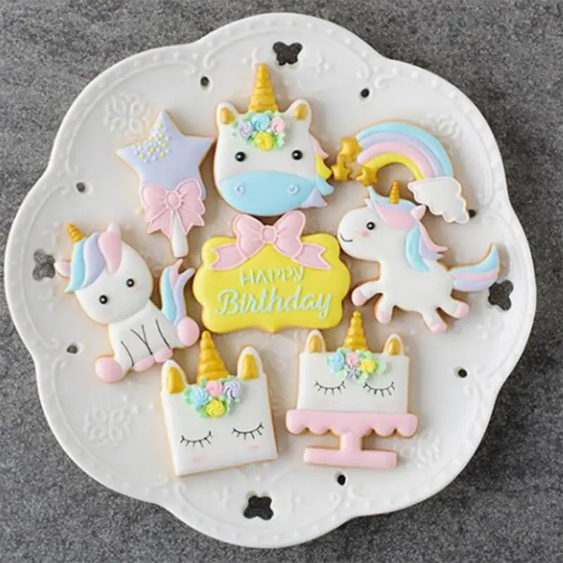 8pcs Set Diy Cute Cartoon Unicorn Horse Shape Fondant Cake Cookie