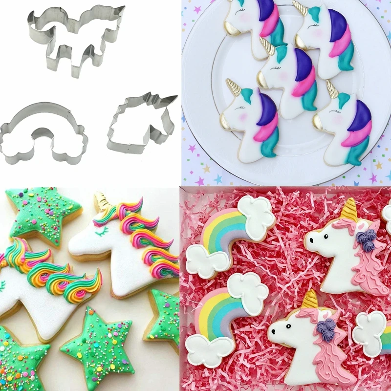 New 3 Pcs Set Stainless Steel Cookie Mold Unicorn And Auspicious