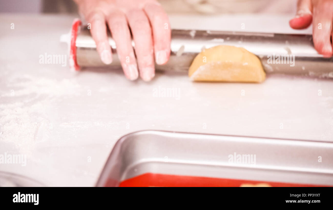 Rolling Out Sugar Cookie Dough To Make Unicorn Cookies Stock Photo