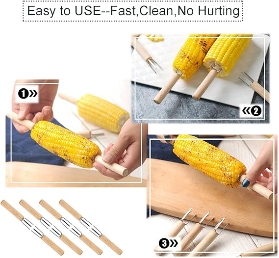 Each corn holder comes with stainless steel prongs to hold it securely and keep your hands clean while you enjoy eating the corn.