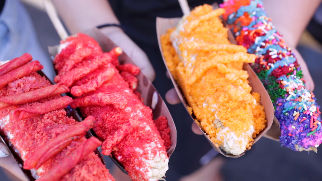 Sa lives david elder takes you inside street treats in converse texas for a new episode of elder eats. At masons den an elote stand at las oc night market mexican grilled street corn is piled with junk food and a rainbow of colored cotija cheese. I prefer white corn but if you know of places that have really good yellow corn then thats fine too.