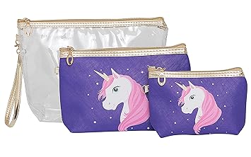 Amazon Com Unicorn Makeup Bag Travel Set Of 3 With Zippers Great Cosmetic Case Organizer For Handbag Purse