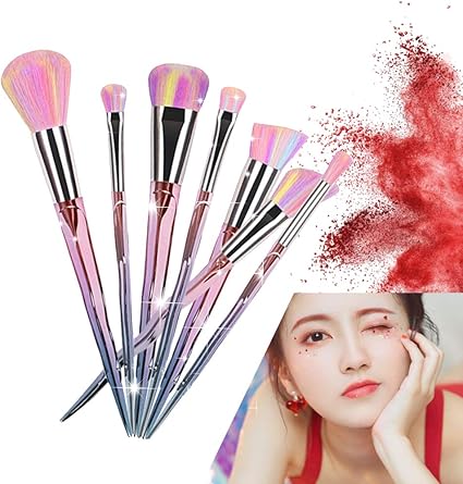 7 Pc Unicorn Makeup Brushes With Colorful Bristles Diamond Shaped