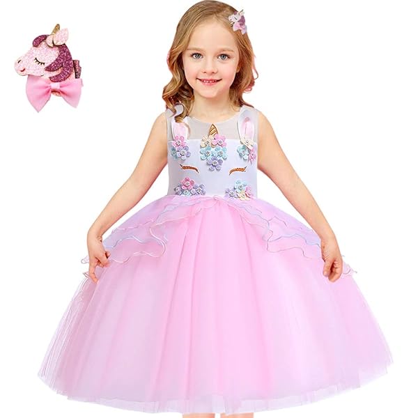 Cotrio Baby Girls Unicorn Costume Dress Pageant Party Dresses Flower Evening Gowns Tutu Dress Size 4t 3 4yrs Pink