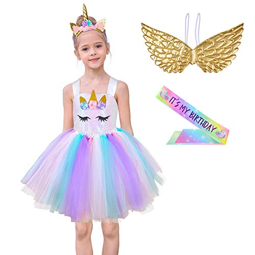 Mhjy Girls Sequin Unicorn Tutu Dress Birthday Party Halloween Unicorn Costume With Headband Wings And Sash 3 4t