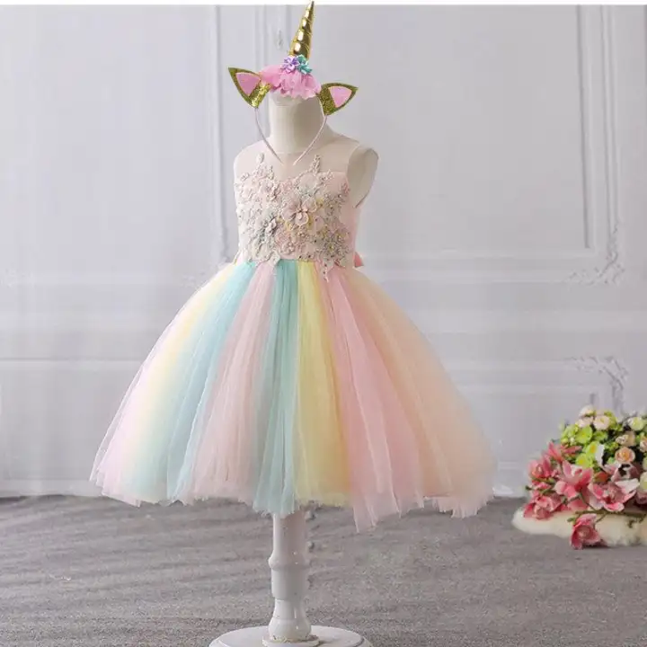 Pastel Unicorn Tutu Dress For Girls Kids Birthday Party Unicorn Costume Outfit With Headband Size 2t 3t 4t 5t 6t 7t