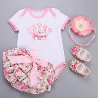 Flower Headband Baby Girl Clothes Dress Shoes Short 4 Piece Set