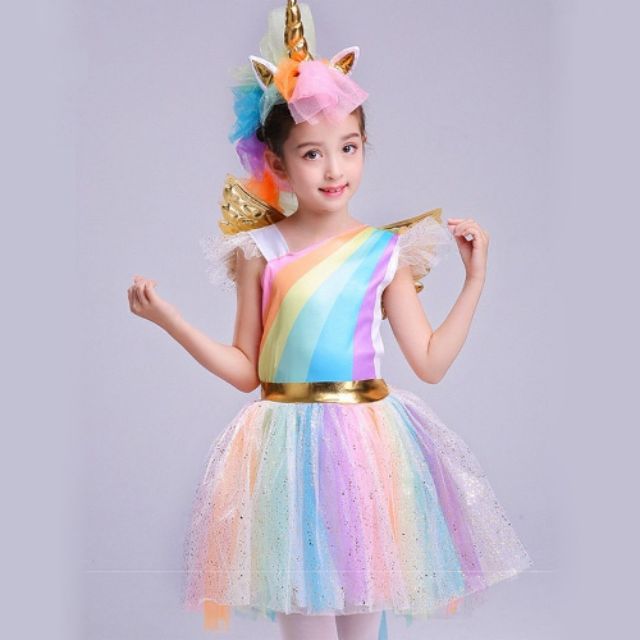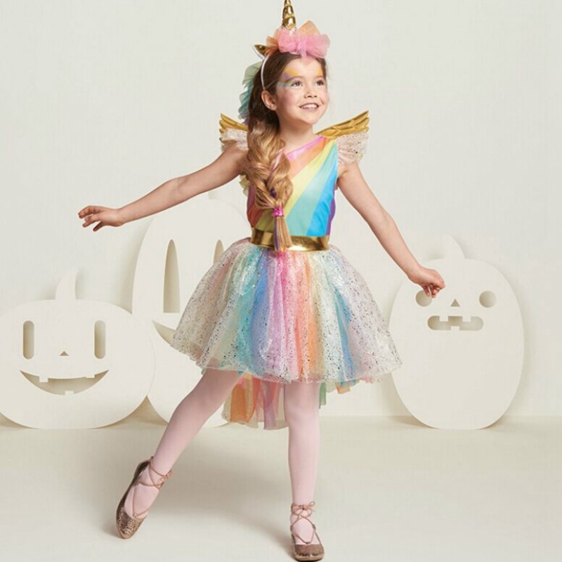 Baju Anak Halloween Girls Unicorn Costume Rainbow Pony Birthday