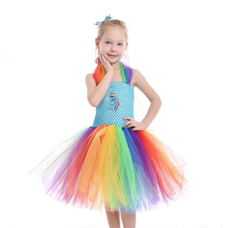 Rainbow Girls Unicorn Tutu Dress Fancy Pony Unicorn Costume For