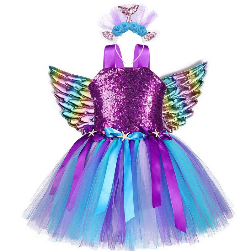 Unicorn Tutu Dress With Headband Wings Girls Birthday Pony Costume