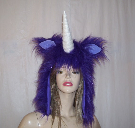 Unicorn Hat Horn Adult Hat Fluffy Last Black Unicorn Fur Fantasy Hat Hood Head Piece Mardi Gras Group Costume Hat Unicorn Costume Hat Black Unicorn Unicorn Hat Costume Hats