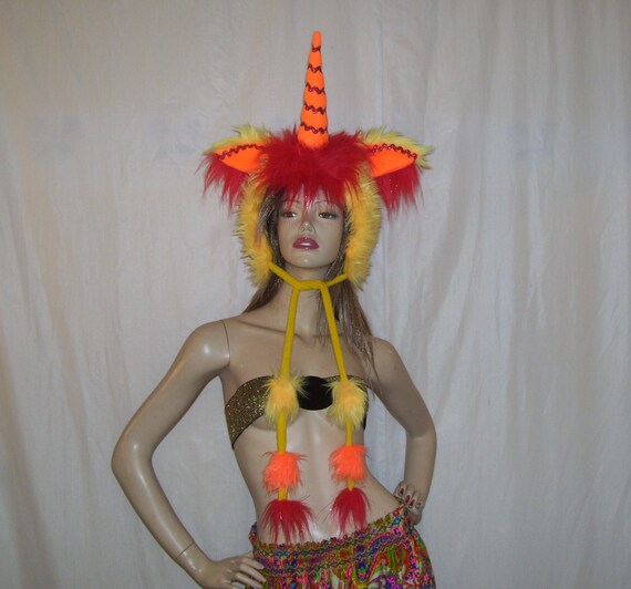 Fire Unicorn Hat Horn Adult Hat Orange Yellow Red Unicorn Fur Etsy
