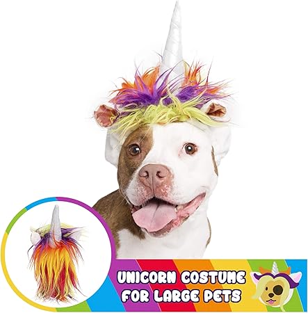 Amazon Com Unicorn Costume For Dogs Cats Pet Krewe Unicorn Hat With Metallic Silver Horn Colorful Mane Large Pet Costume Pet Supplies
