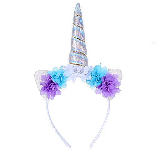 Maticr Cute Rainbow Unicorn Flower Crown Headband Birthday Girls Head Piece Unicorn Costume Party Hat Silver Wantitall