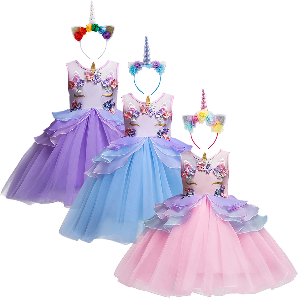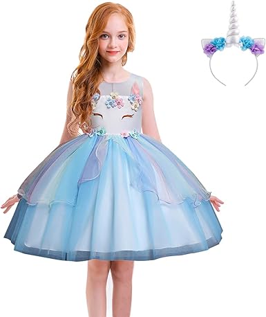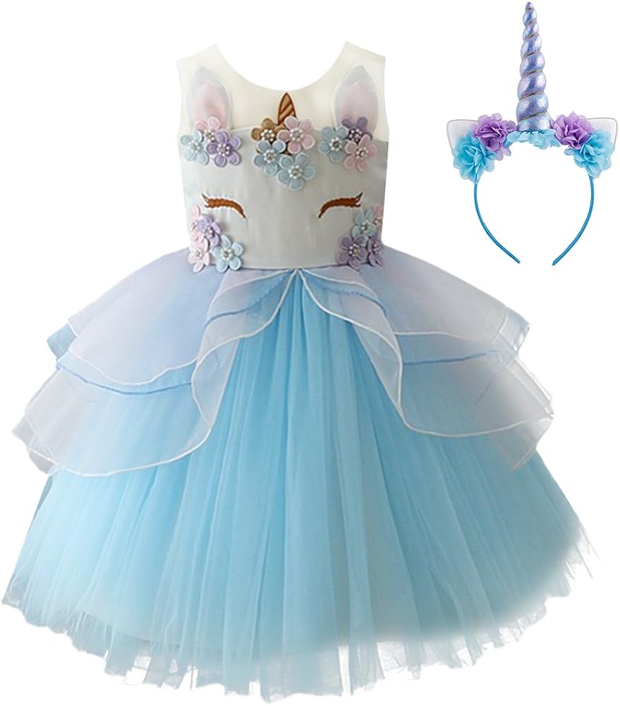 Amazon Com Baby Kid Girl Unicorn Costume Flower Tutu Tulle Dress Princess Pageant Party Cosplay Fancy Dress Up Evening Gown Clothing