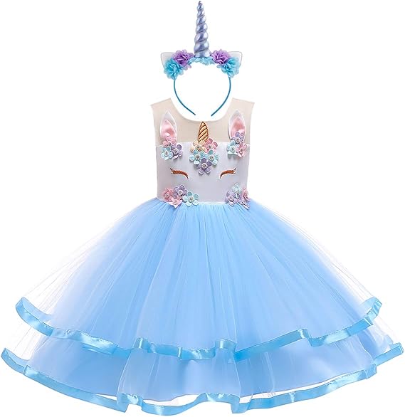 Ttyaovo Flower Girls Unicorn Costume Kids Pageant Princess Party Dress With Unicorn Headband Size 2 3 Years Blue Buy Online In Bahamas Ttyaovo Products In