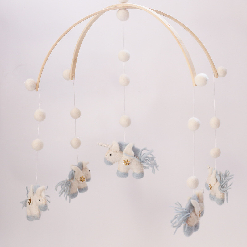 Natural Wool Felt Unicorn Ball Wind Bell Pram Cot Crib Wooden