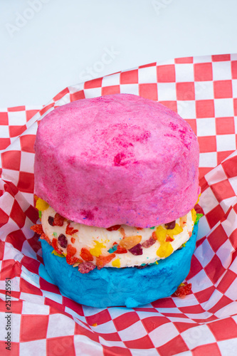 Unicorn Cotton Candy Ice Cream Sandwich With Pink And Blue Cotton