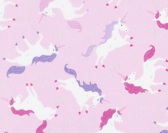 Unicorns Pretty Please Pink Cotton Quilting Fabric 1 2 Yard