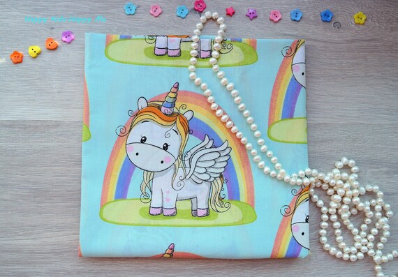 Half Yard Thin Cotton Fabric With Cartoon Unicorn Print Handmade