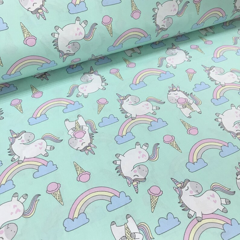 Cali Fabrics Mint Magical Rainbow Unicorns By Robert Kaufman