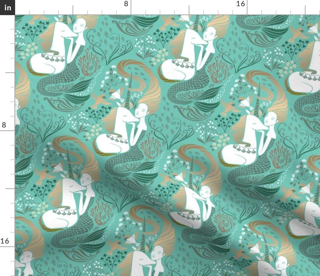 Amazon Com Spoonflower Fabric Mermaid Unicorn Adriatic