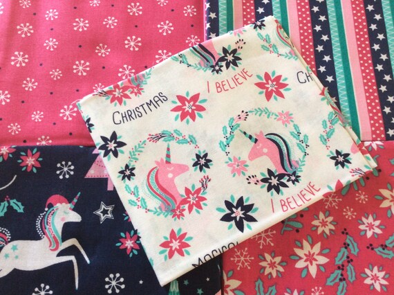 Christmas Magical Unicorn Cotton Fat Quarter Fabric 5 Fat Etsy
