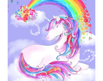 Faulty Magical Rainbow Unicorn Panel Fabric By Robert Kaufman