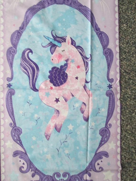Unicorn Pink Purple Blue Cotton Fabric Panel Etsy