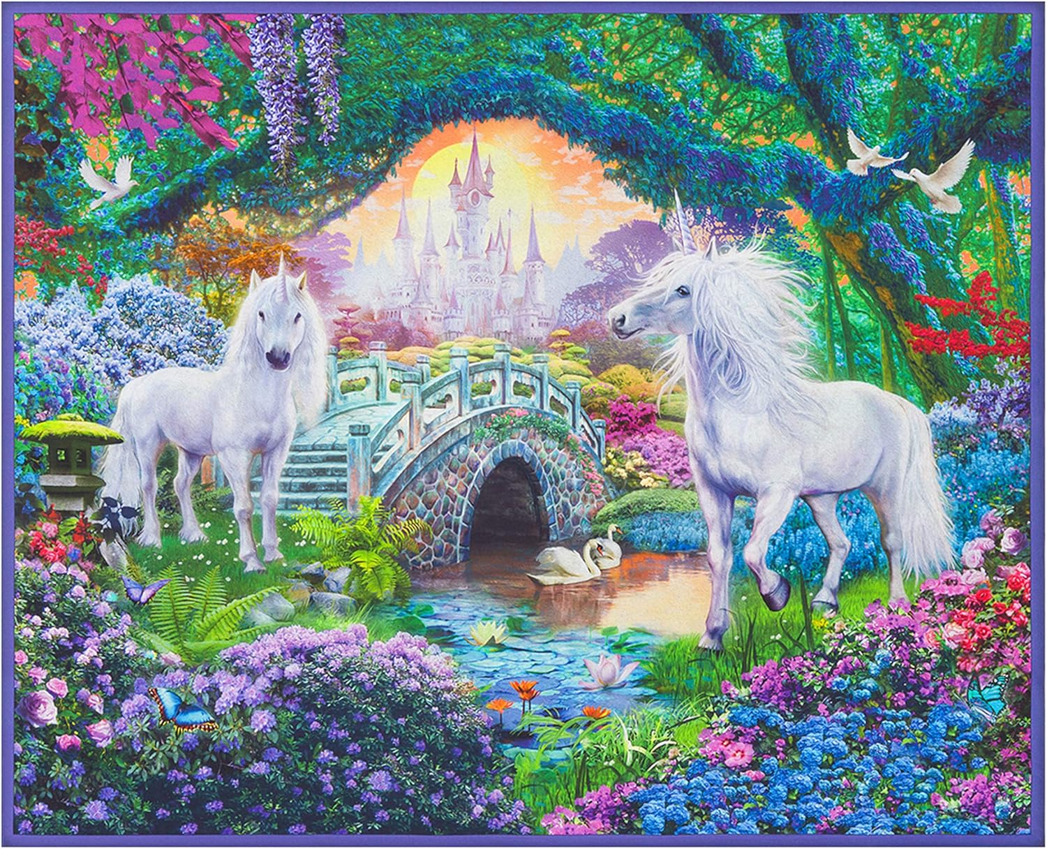 Fairies Garden Morningmoon Unicorn Cotton Quilting Fabric Panel