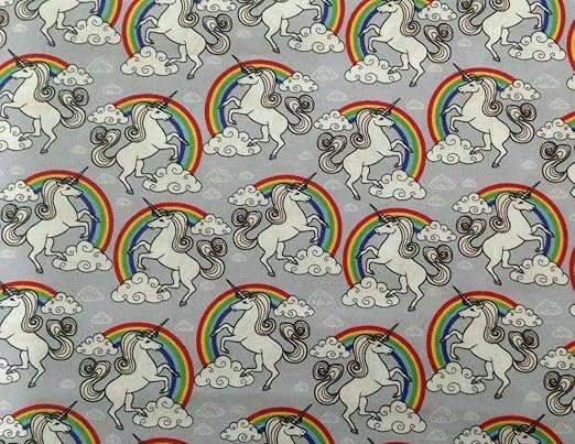 Rainbow Unicorn Print Cotton Poplin Fabric Silver 112cm Abakhan